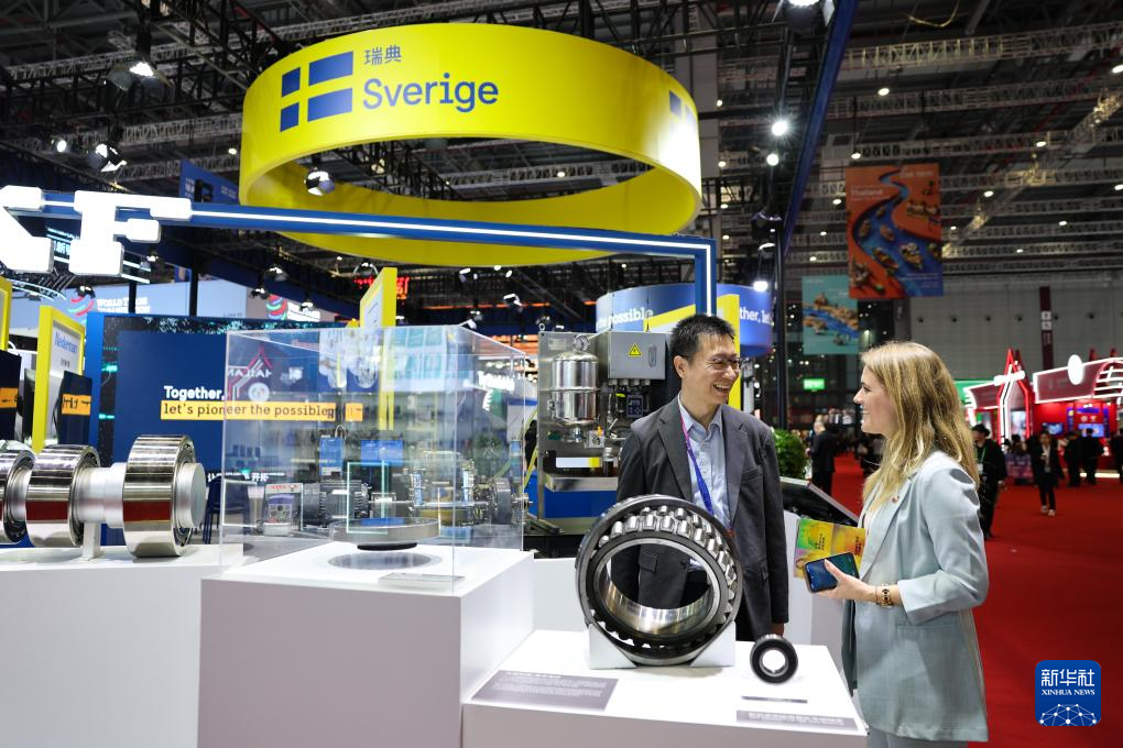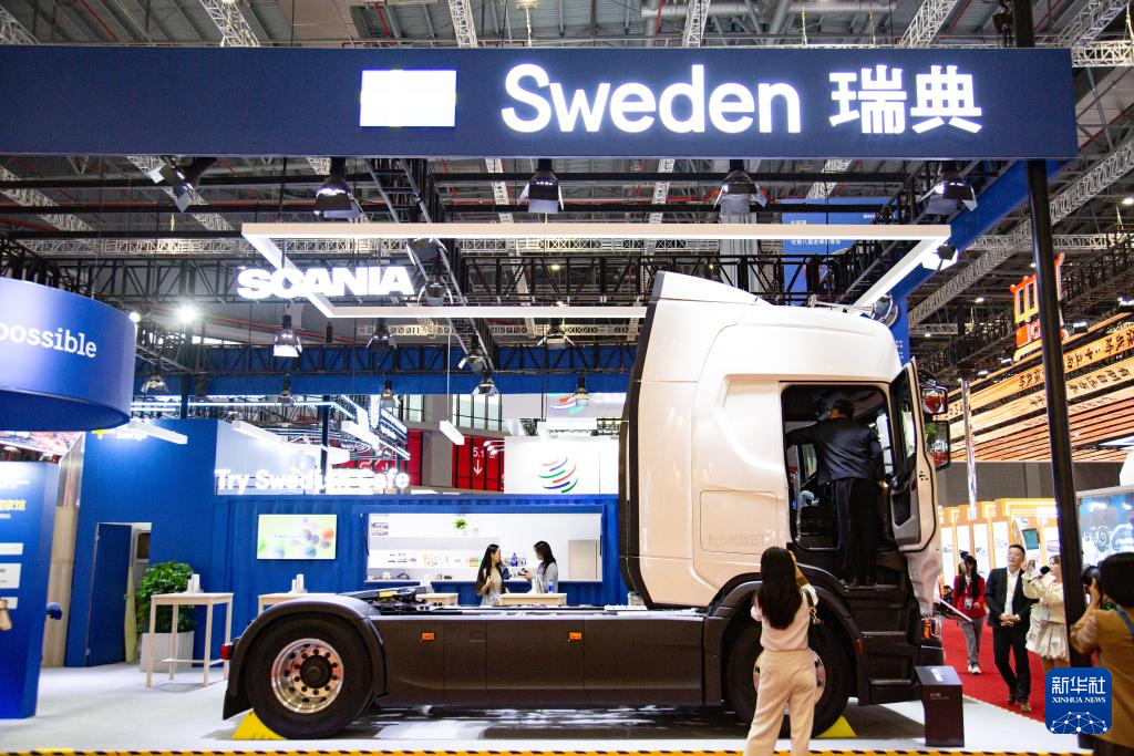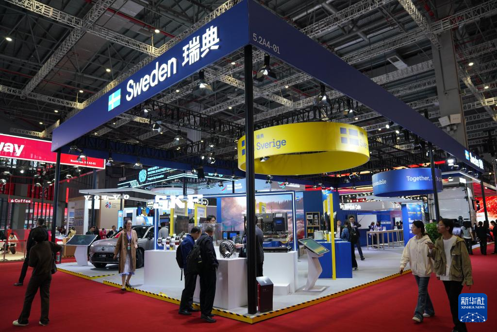 这是11月5日拍摄的第八届进博会国家展瑞典馆。