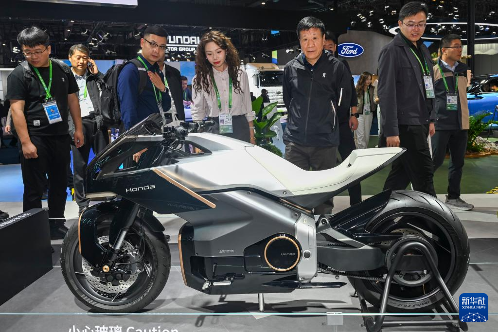 11月6日,在第八届进博会汽车及智慧出行展区本田(Honda)展台,观众在围观本田全新电动概念摩托车。