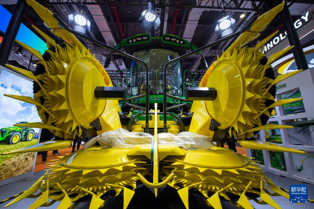 11月6日,在第八届进博会技术装备展区拍摄的自走式青贮收获机。