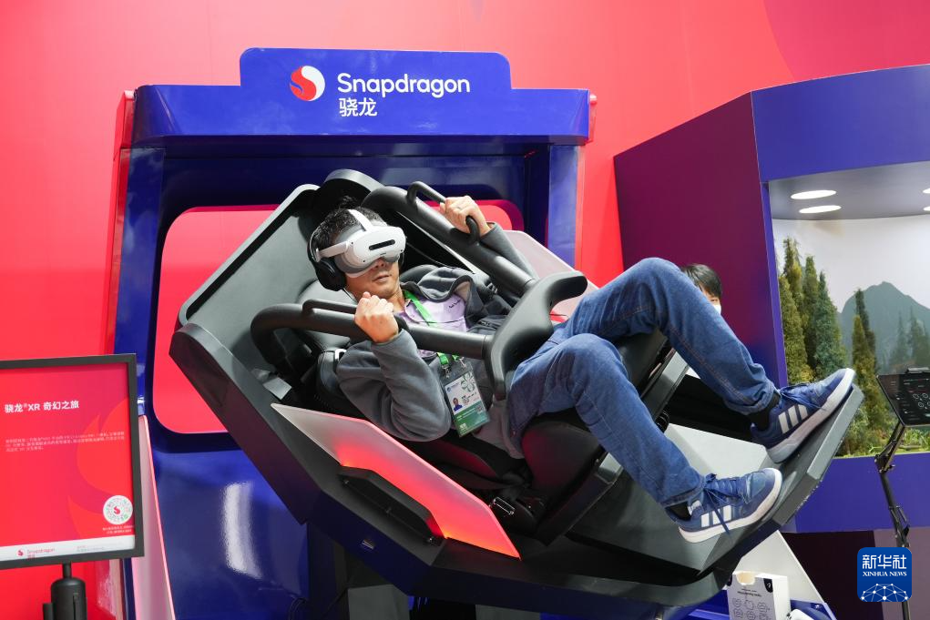 11月6日,参观者在第八届进博会技术装备展区高通展台体验XR设备。