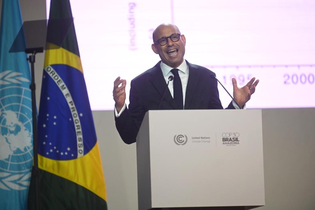 11月10日,《联合国气候变化框架公约》秘书处执行秘书西蒙·斯蒂尔在巴西北部城市贝伦举行的《联合国气候变化框架公约》第三十次缔约方大会(COP30)开幕式上发表讲话。新华社发(卢西奥·塔沃拉摄)