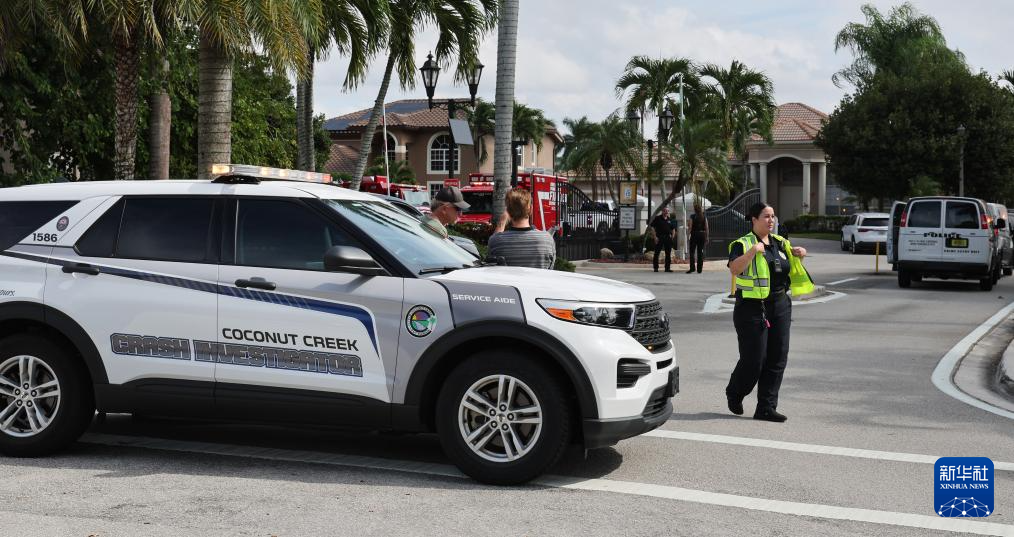 11月10日,在美国佛罗里达州珊瑚泉市,应急人员在事故现场附近工作。新华社/美联