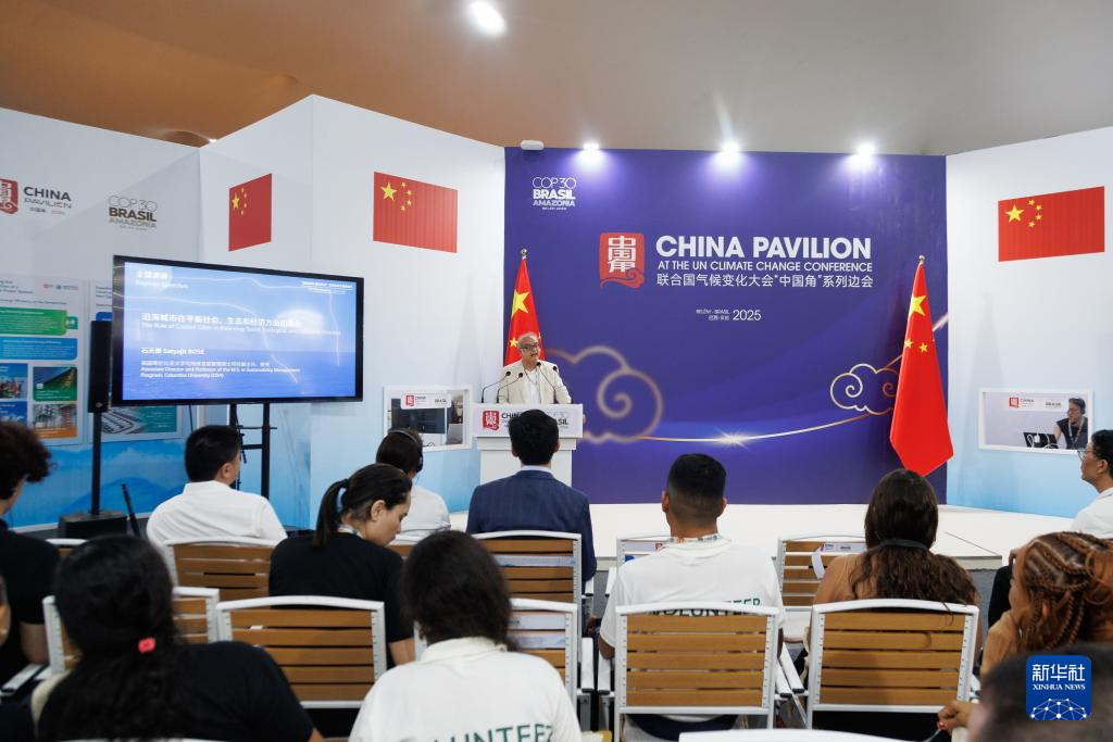 11月10日,在巴西北部城市贝伦,“美丽海湾 美好生活”海洋生态文明故事汇暨《中国可持续发展报告(2025)》发布活动在《联合国气候变化框架公约》第三十次缔约方大会(COP30)“中国角”举行。新华社发(克劳迪娅·马尔提尼 摄)