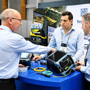 11月11日,在南非开普敦,人们在2025年非洲科技节的非洲通信展上交流。