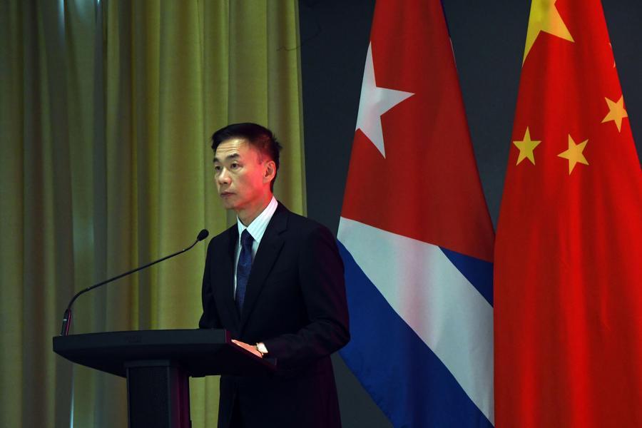 11月12日,在古巴首都哈瓦那,中国驻古巴大使华昕在“红厅论坛·哈瓦那研讨会”上致辞。 新华社发(华金·埃尔南德斯摄)