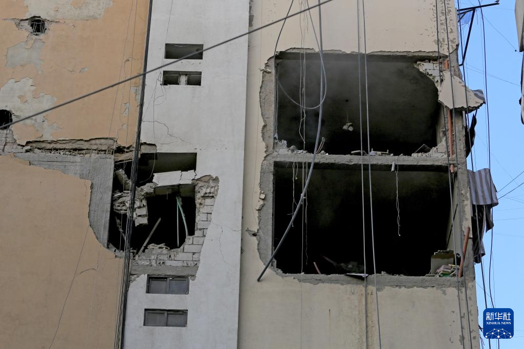 这是11月23日在黎巴嫩首都贝鲁特南郊拍摄的遭以军空袭的一处住宅。新华社发(比拉尔·贾维希摄)