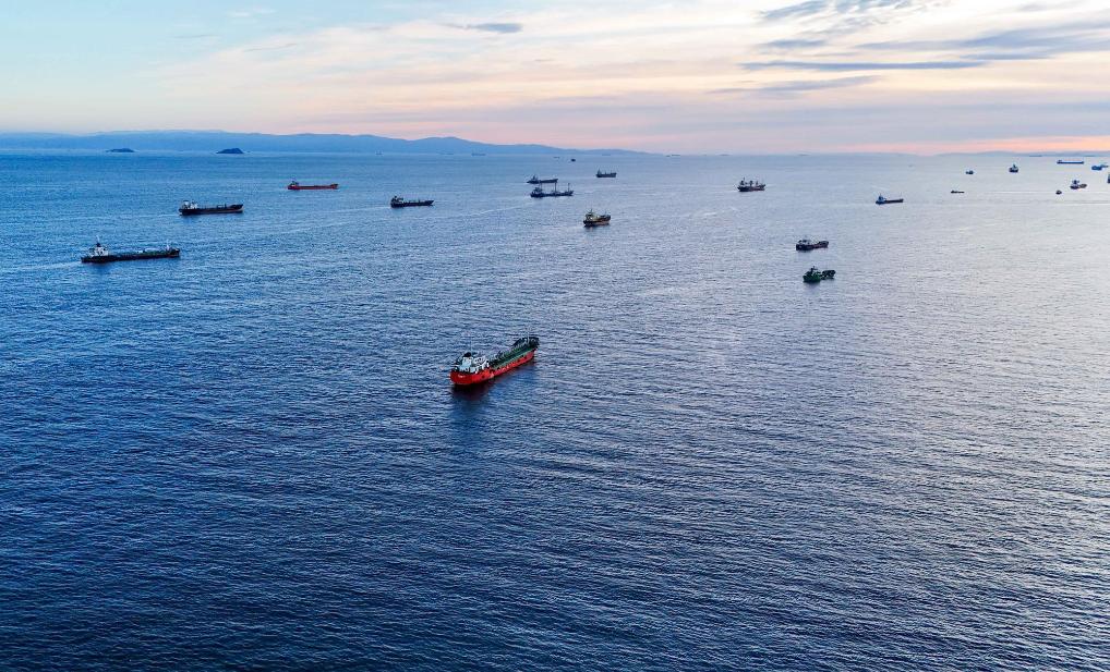 这是11月25日拍摄的停泊在土耳其伊斯坦布尔马尔马拉海上的船只(无人机照片)。新华社记者刘磊摄