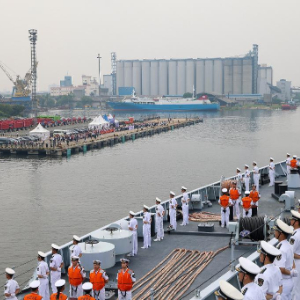 正在执行远海综合实习任务的中国海军989编队7日抵达印度尼西亚雅加达丹戎不碌港,开始对印度尼西亚进行为期4天的友好访问。