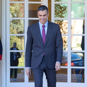 11月27日,在西班牙马德里,西班牙首相桑切斯走出蒙克洛亚宫。(资料照片)新华社记者 孟鼎博 摄