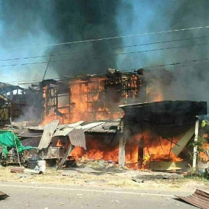 这张泰国军方提供的照片显示,12月13日,泰国四色菊府的一处民宅被火箭弹摧毁。新华社发(泰国军方供图)