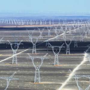 这是2025年4月24日在新疆哈密地区三塘湖镇附近拍摄的“疆电入渝”特高压工程(无人机照片)。新华社记者 王菲 摄