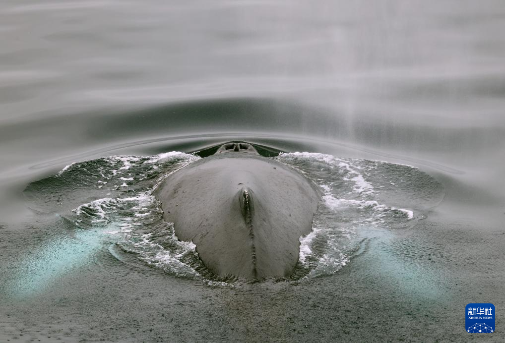 12月13日,一只座头鲸在南极洲阿根廷布朗科考站附近游弋。