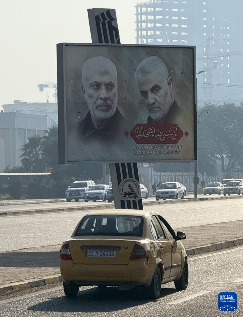 从伊拉克首都巴格达市区到机场的路上,立着许多大型宣传牌。宣传牌上卡西姆·苏莱曼尼和阿布·迈赫迪·穆汉迪斯肖像并肩而立,下面有一段文字——“我们不会忘记我们烈士的鲜血”。