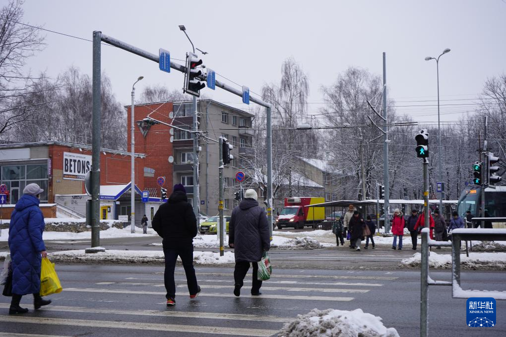 1月7日,在拉脱维亚里加,行人通过人行横道。新华社记者 陈玉芬 摄