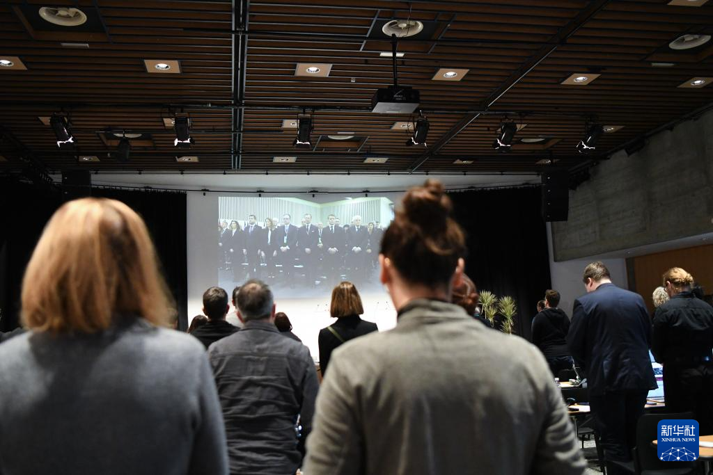 1月9日, 在瑞士瓦莱州马蒂尼,人们观看官方悼念仪式并参加哀悼。新华社记者 连漪 摄