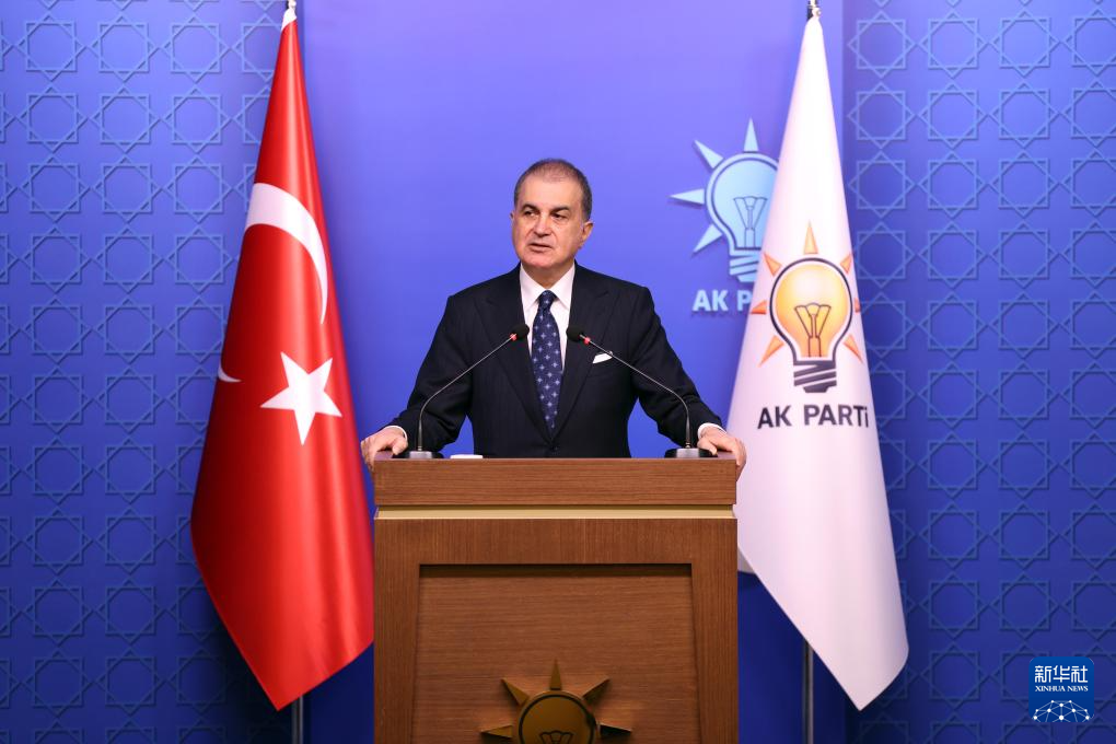 1月12日,土耳其执政党正义与发展党发言人厄梅尔·切利克在首都安卡拉出席记者会。新华社发(穆斯塔法·卡亚摄)