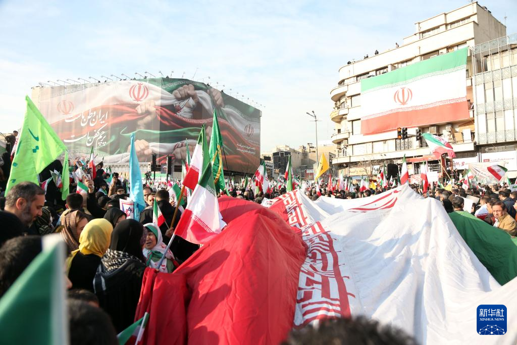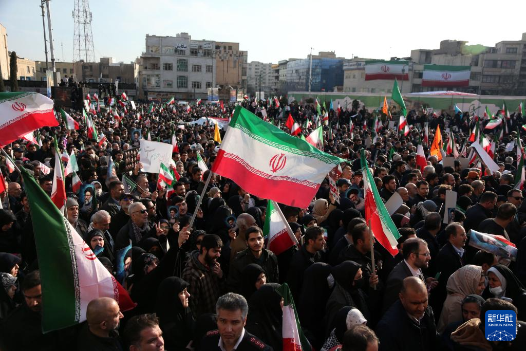 1月12日,在伊朗首都德黑兰,人们参加集会。