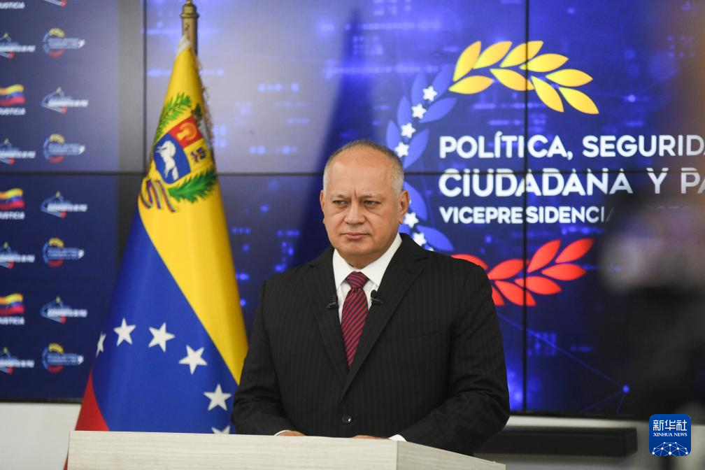1月13日,委内瑞拉内政部长卡韦略在加拉加斯参加一场新闻发布会。