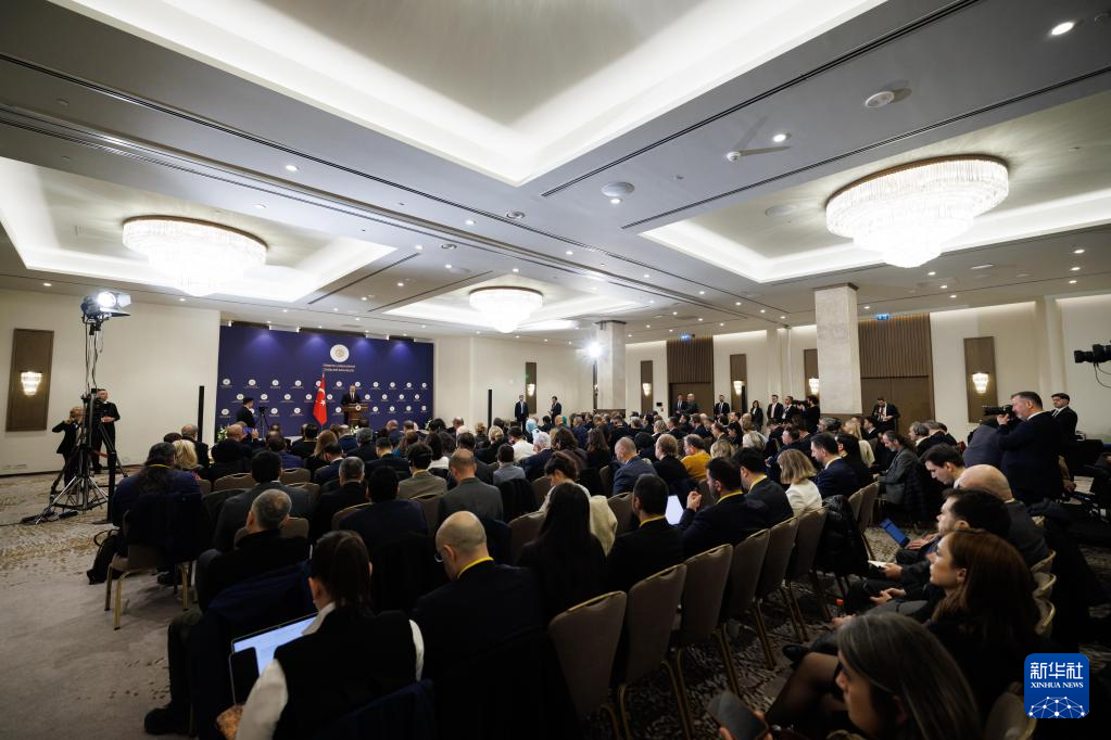 1月15日,土耳其外长费丹在土耳其伊斯坦布尔举行的年度记者会上讲话。新华社发(土耳其外交部供图)