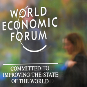 这是1月18日在瑞士达沃斯拍摄的世界经济论坛标识。新华社记者连漪摄