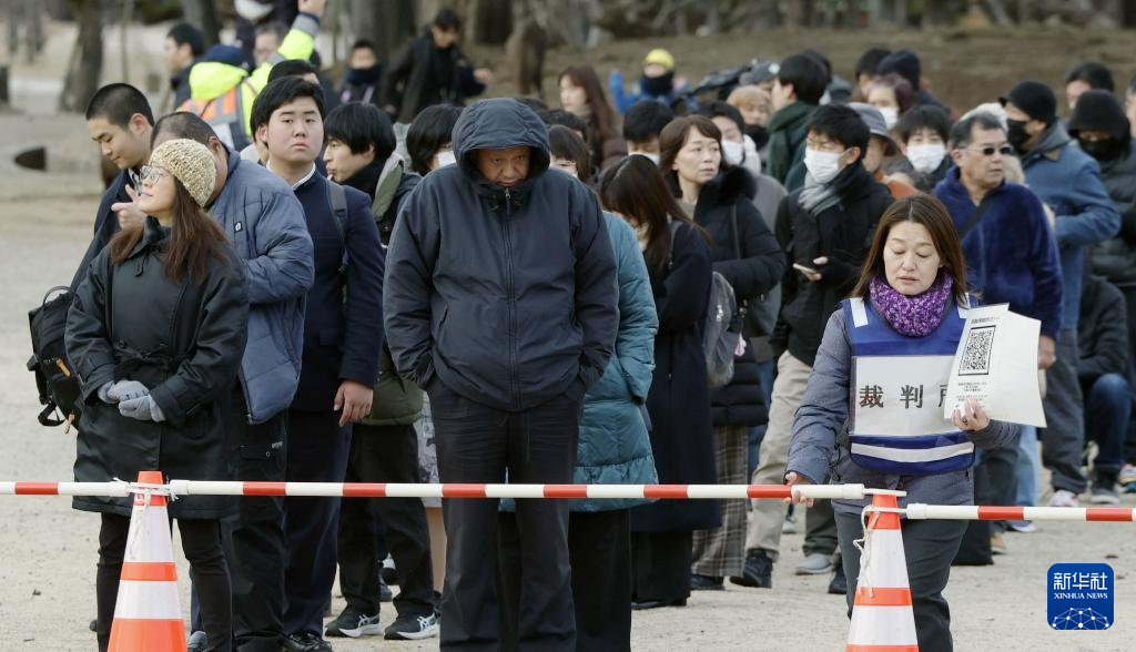 1月21日,在日本奈良,民众排队准备领取日本前首相安倍晋三遇刺案的法庭旁听票。 新华社/共同社