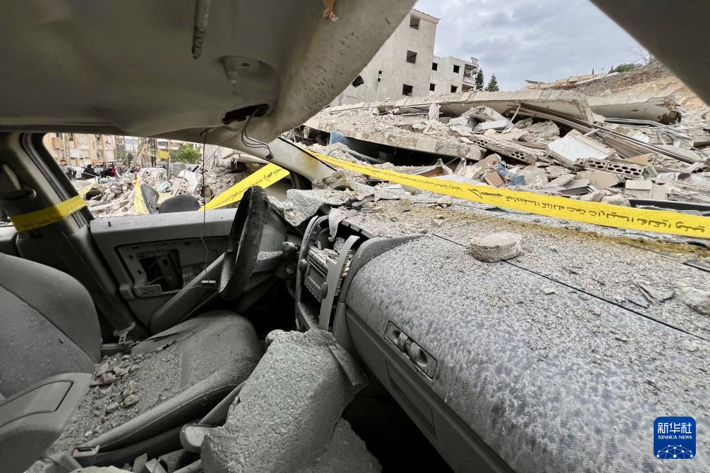 这是1月22日在黎巴嫩南部盖纳里特镇拍摄的受损车辆。