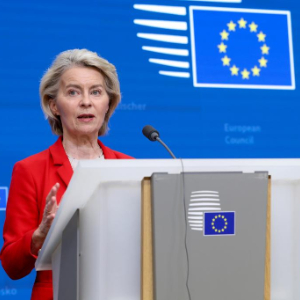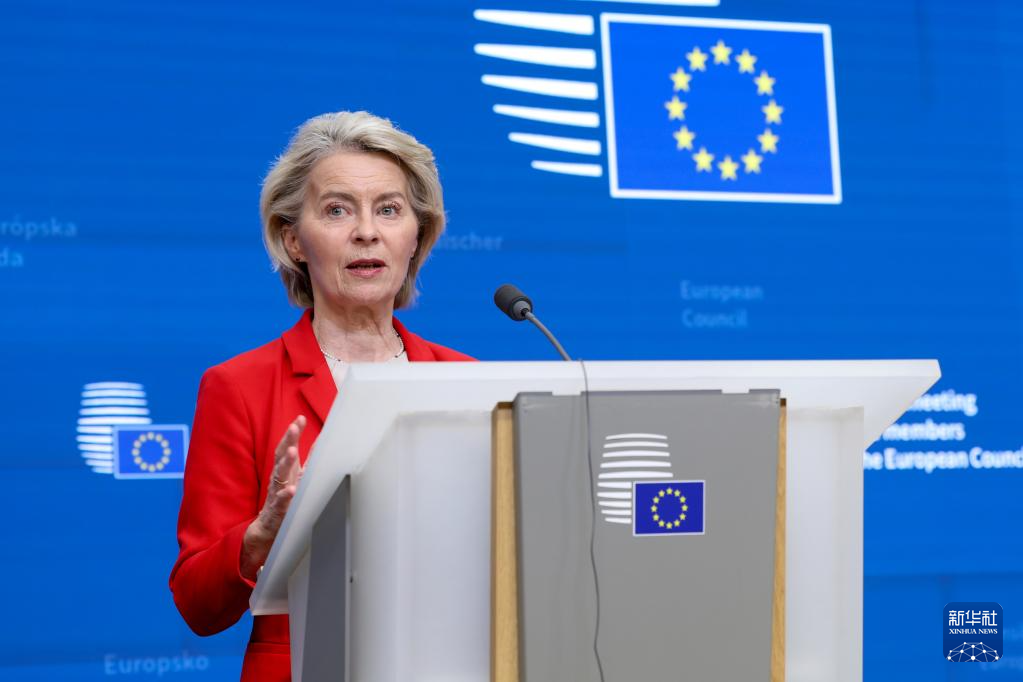 1月23日凌晨,在比利时布鲁塞尔,欧盟委员会主席冯德莱恩出席欧盟紧急峰会后的新闻发布会。新华社发(欧盟供图)
