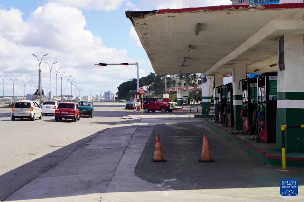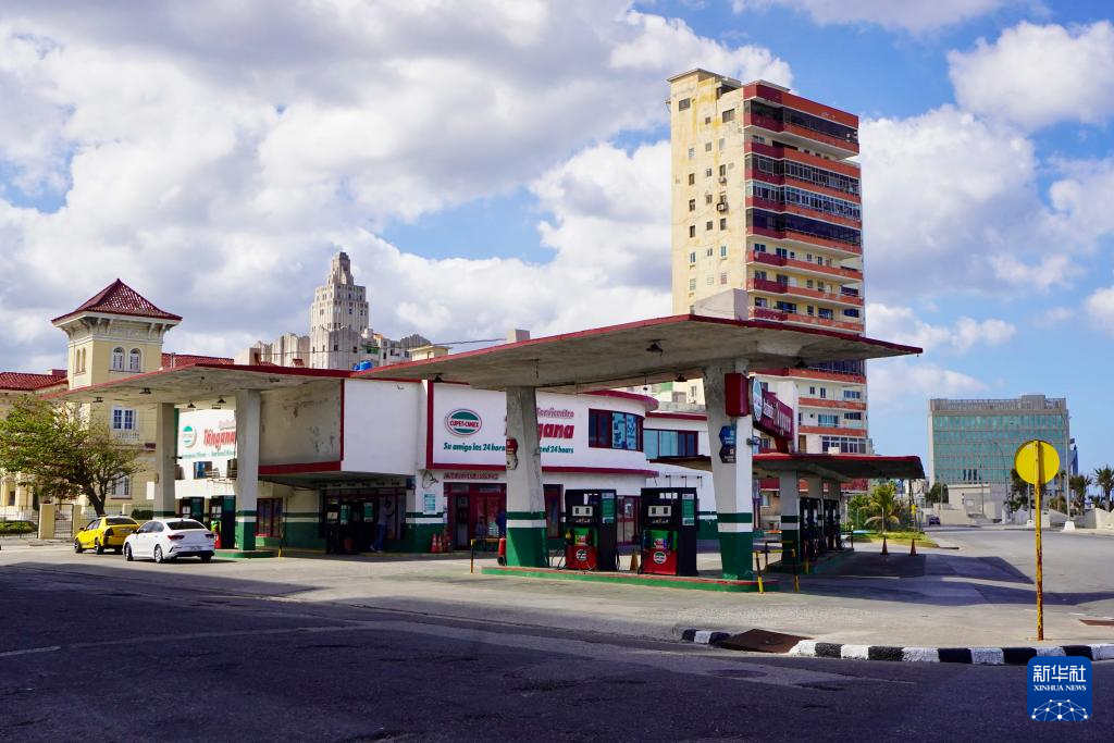 这是1月24日在古巴首都哈瓦那反帝广场旁拍摄的一处加油站。新华社记者 蒋彪 摄