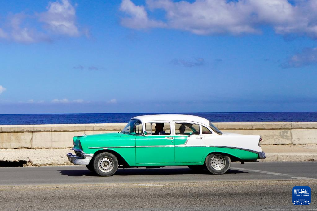 1月24日,一辆老爷车行驶在古巴首都哈瓦那海滨大道上。新华社记者 蒋彪 摄