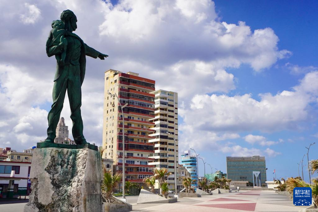 这是1月24日在古巴首都哈瓦那反帝广场上拍摄的古巴民族英雄何塞·马蒂雕像。新华社记者 蒋彪 摄