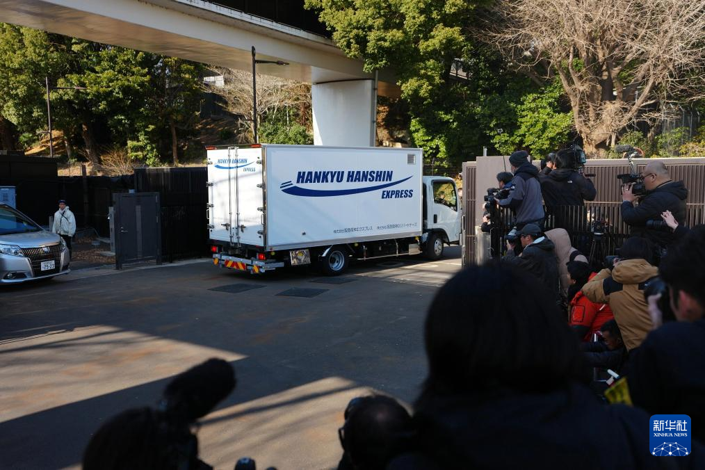 1月27日,旅日大熊猫“晓晓”和“蕾蕾”由卡车运载从东京上野动物园出发,踏上回国之旅。新华社记者 贾浩成 摄