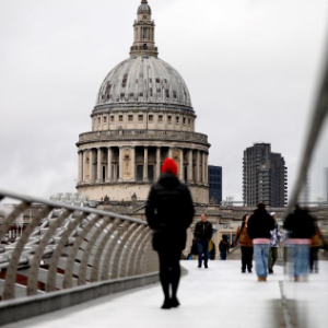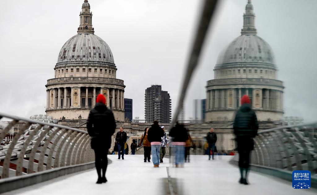 1月27日,一名行人走在英国伦敦圣保罗教堂附近。
