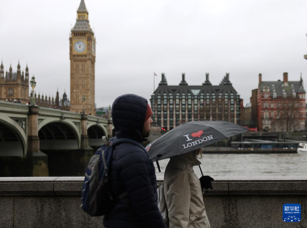1月27日,人们撑伞行走在英国伦敦大本钟附近。