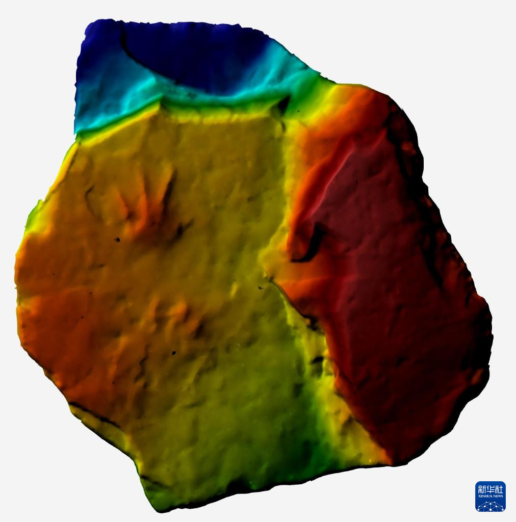 2025年7月30日拍摄的两栖动物足迹化石标本的三维成像。新华社发