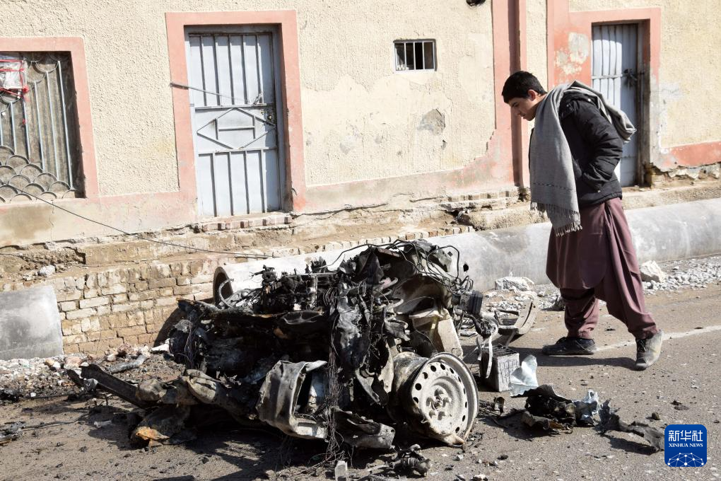 1月31日,在巴基斯坦西南部俾路支省奎达地区,当地居民查看被烧毁的车辆。新华社发(阿萨德摄)
