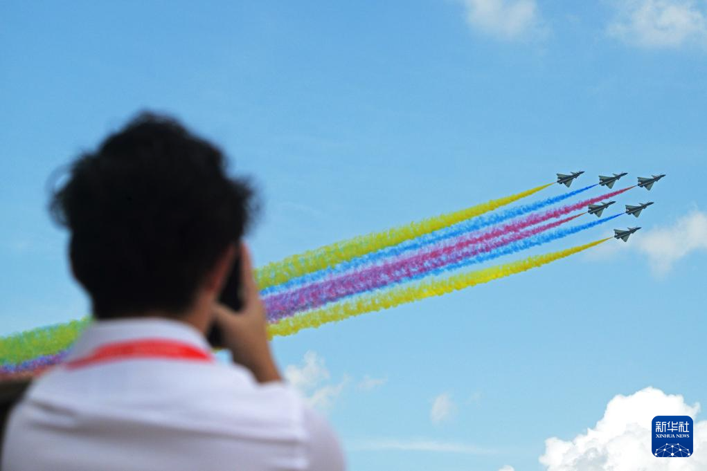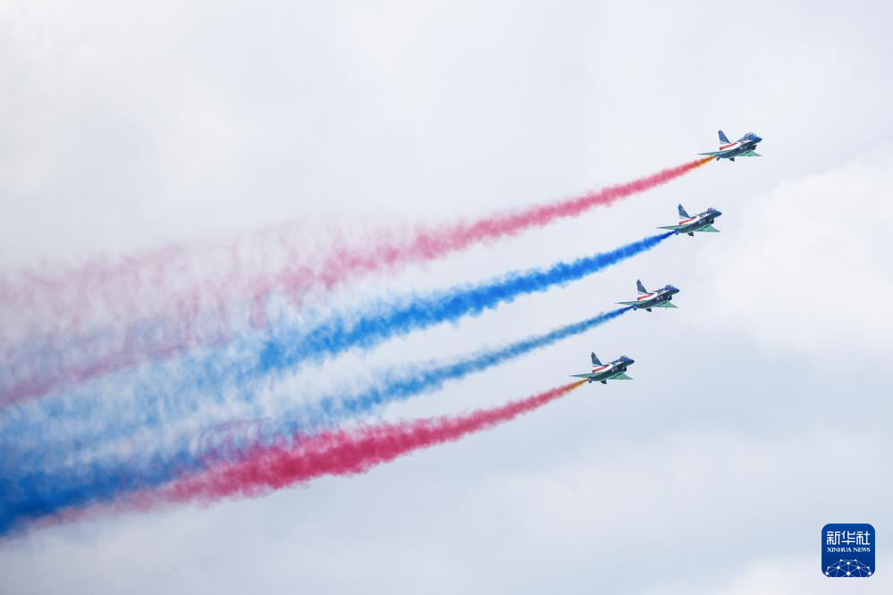 随后,单机小速度平飞、五机水平开花等动作接连上演,编队整齐划一、动作流畅紧密,尽显中国空军的专业素养与开放自信。