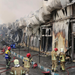 伊朗首都德黑兰西部一处设有大量摊位的市场3日发生大面积火灾,现场浓烟滚滚。目前火灾原因和人员伤亡情况不明。