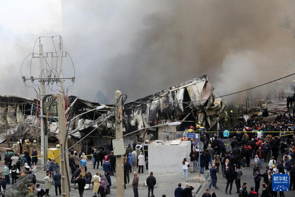 2月3日,在伊朗首都德黑兰,人们聚集在火灾现场附近。