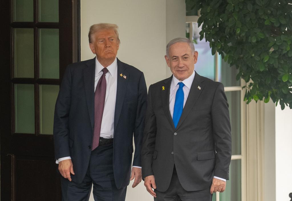 2025年9月29日,在美国首都华盛顿白宫,美国总统特朗普(左)迎接到访的以色列总理内塔尼亚胡。新华社记者 胡友松 摄