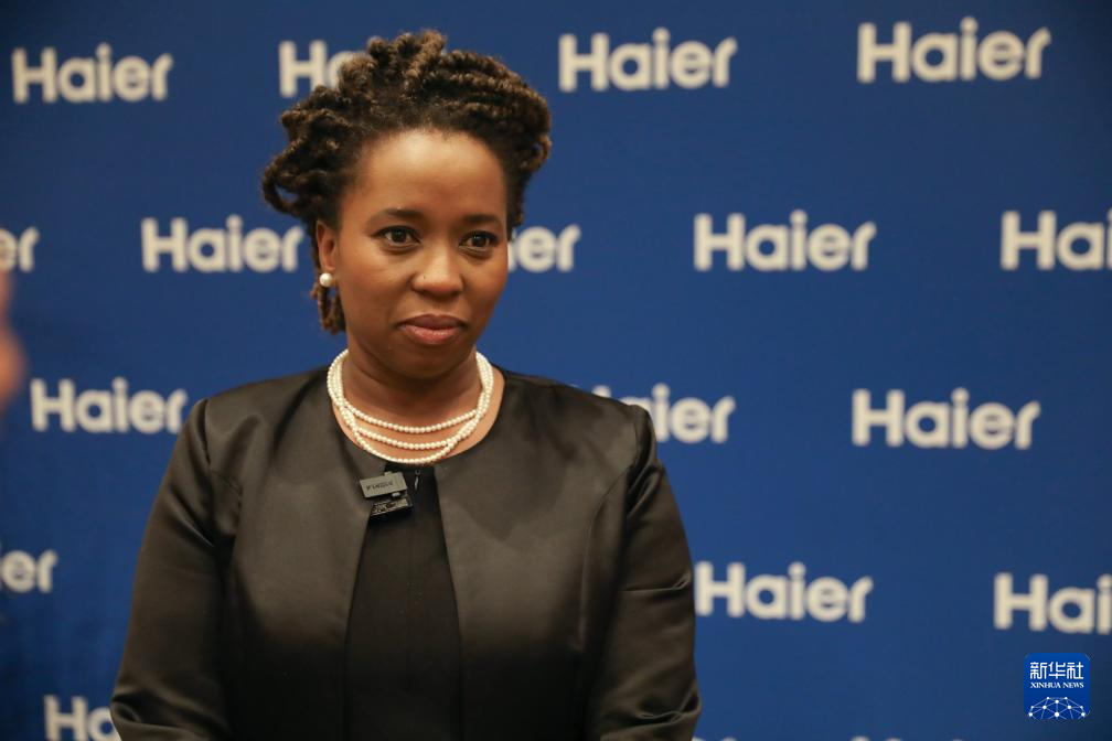 2月2日,在南非约翰内斯堡举行的海尔集团旗下子公司海尔智家产品发布活动上,南非豪登省政府执委会成员武伊斯瓦·拉莫豪帕接受新华社记者采访。