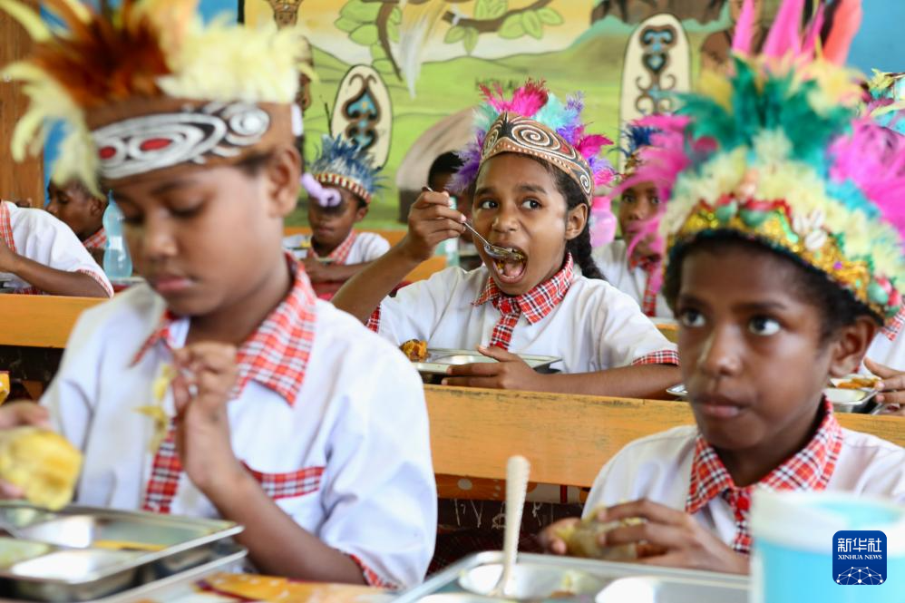 2月4日,印度尼西亚巴布亚省首府查亚普拉一所小学的学生享用营养午餐。新华社记者 叶平凡 摄