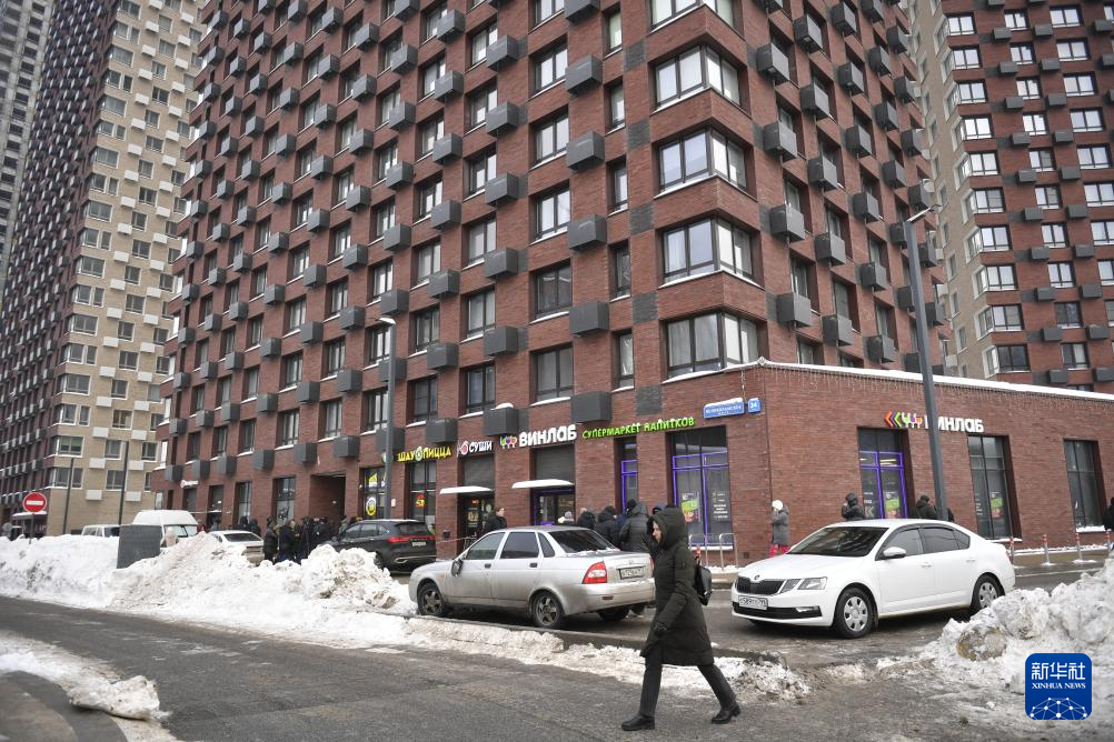 2月6日,在俄罗斯首都莫斯科,行人经过枪击现场附近的街道。新华社发(亚历山大摄)