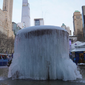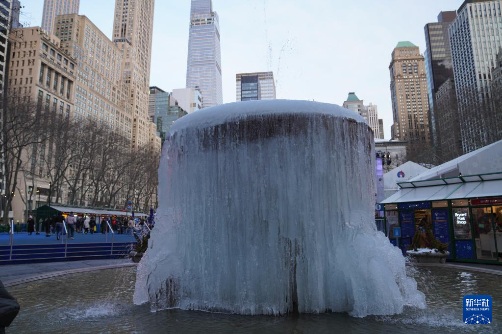 这是2月7日在美国纽约拍摄的结冰的喷泉。