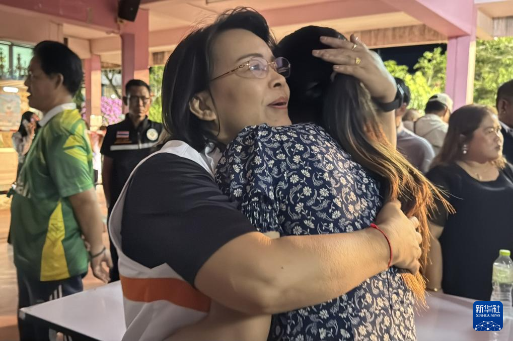 2月11日,两名女子在泰国宋卡府合艾县发生校园枪击案的学校互相拥抱。