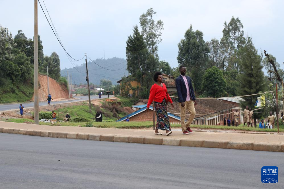 2月9日,在卢旺达南方省的穆汉加地区,当地居民在中国电建市政建设集团有限公司承建的公路旁行走。 新华社记者 鞠银河 摄