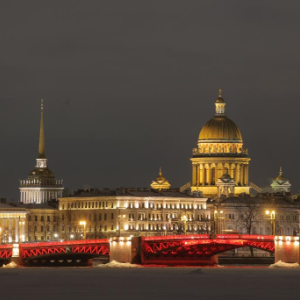 圣彼得堡冬宫桥点亮“中国红”