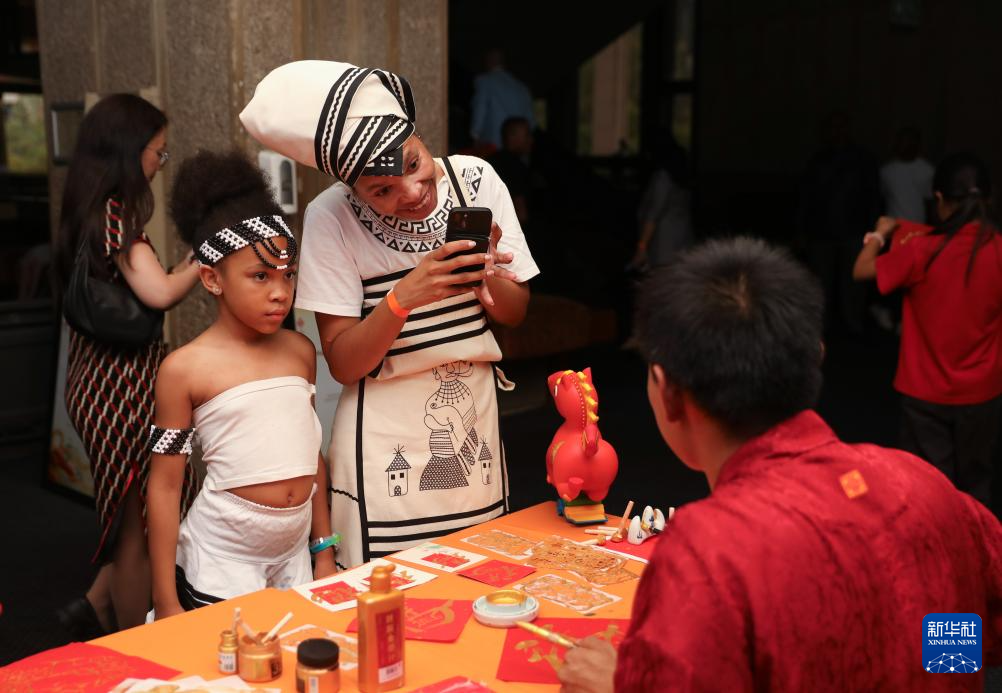 2月13日,在位于南非比勒陀利亚的南非国家剧院,人们体验中国文化。新华社记者 陈为 摄