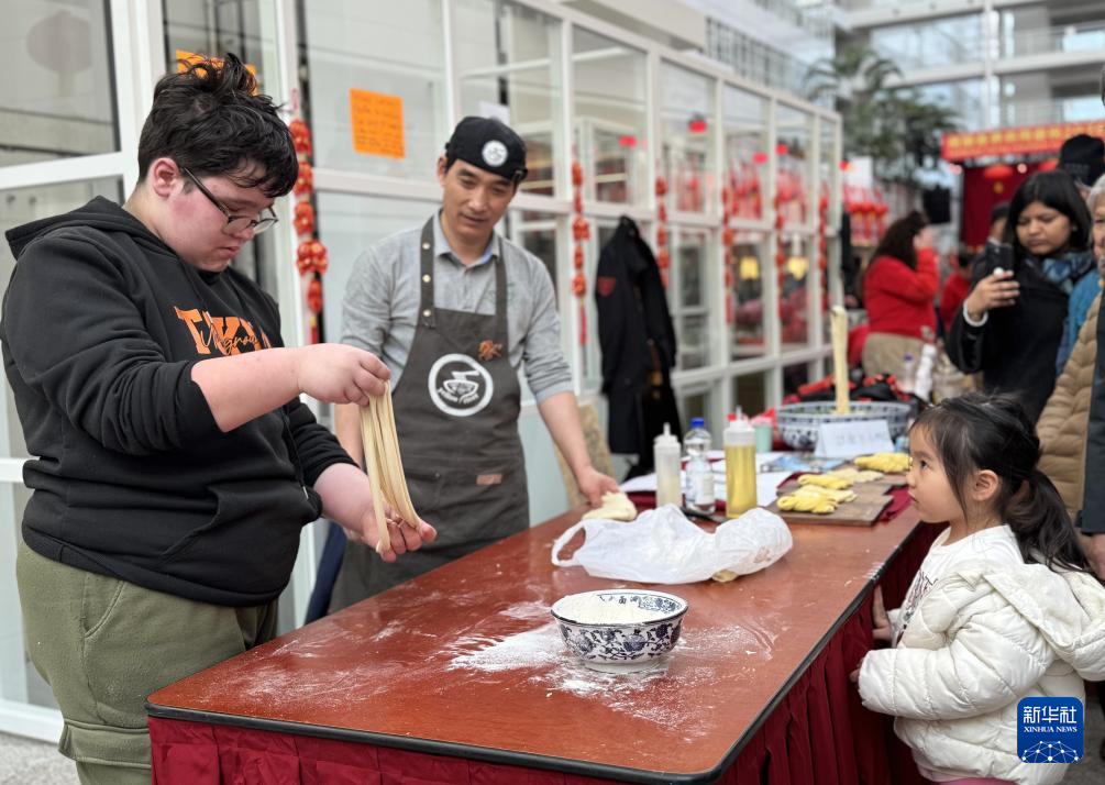 2月14日,在荷兰海牙市政厅,市民学做拉面。新华社发(孙晶晶摄)