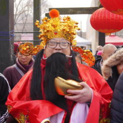 2月17日,人们在美国纽约中国城的庙会现场参观游玩。