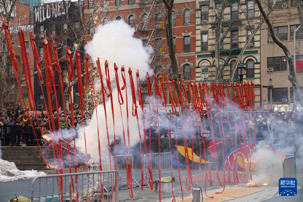 美国纽约中国城当日举行“新春炮竹文化庙会”,舞龙、舞狮、燃放炮竹等丰富的现场活动吸引数千人前来感受浓郁的中国年味。